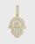 Embrace spiritual elegance with our 18k gold bonded Hamza pendant. This stunning piece features meticulously crafted details and shimmering CZ stones, adding a touch of divine beauty to any outfit. The Hamza symbol, also known as the Hand of Fatima, is believed to bring protection and ward off negativity. Wear this pendant as a symbol of faith and style, and let its radiant charm captivate those around you. Crafted with utmost care and attention to detail, our Hamza pendant is a true embodiment of sophistication and spiritual significance.
